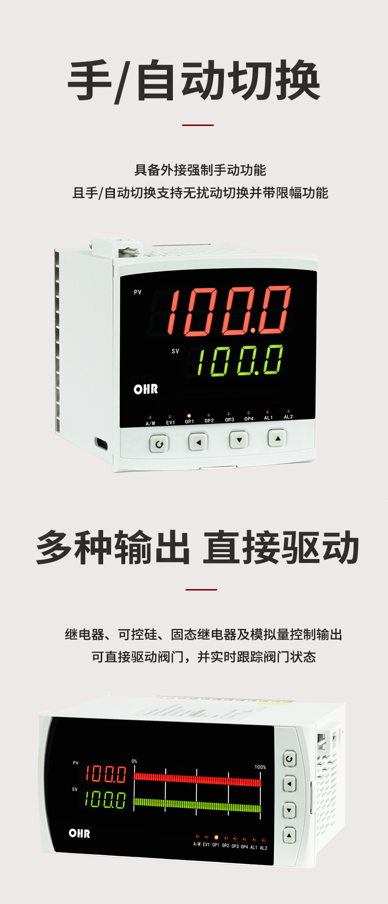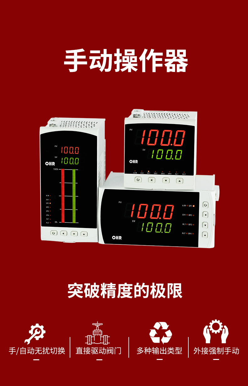 OHR-E500系列手動操作器適合作為DCS系統(tǒng)回路調(diào)節(jié)控制輸出和智能調(diào)節(jié)器控制輸出的備用操作器使用,可同時輸入和顯示給定信號和反饋信號,可與各類傳感器、變送器配合使用。