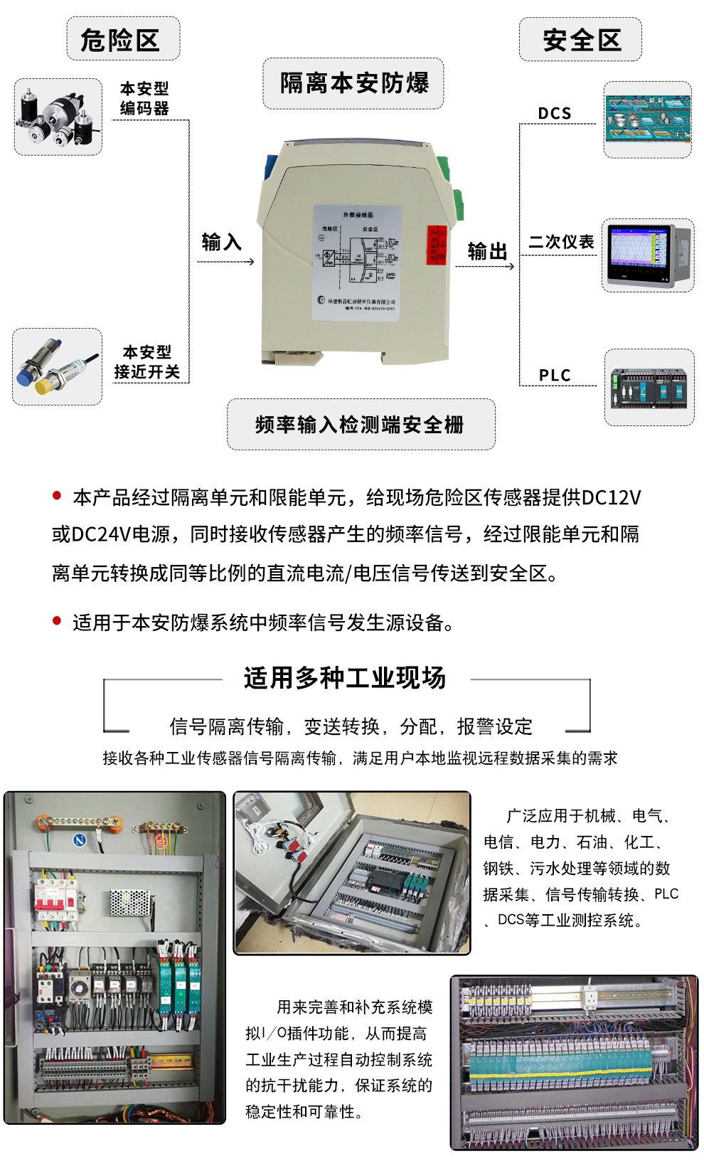 OHR-A34系列頻率輸入檢測端隔離柵可給現(xiàn)場危險區(qū)儀表提供12V或24V的隔離電源,危險區(qū)儀表產(chǎn)生的頻率信號通過安全柵隔離傳輸?shù)桨踩珎?cè)輸出。輸入具有較高的抗干擾性能。該產(chǎn)品需獨立供電,輸入/輸出/電源三隔離。本產(chǎn)品可用在頻率信號源等設(shè)備。
