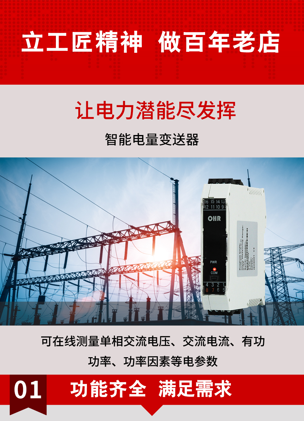 OHR-D4系列智能電量變送器是一款高性價(jià)比的智能電參數(shù)變送器,它能替代過去傳統(tǒng)的電流、電壓、功率、 功率因數(shù)、電量等一系列變送器,降低系統(tǒng)成本,方便現(xiàn)場布線并提高系統(tǒng)的可靠性。
