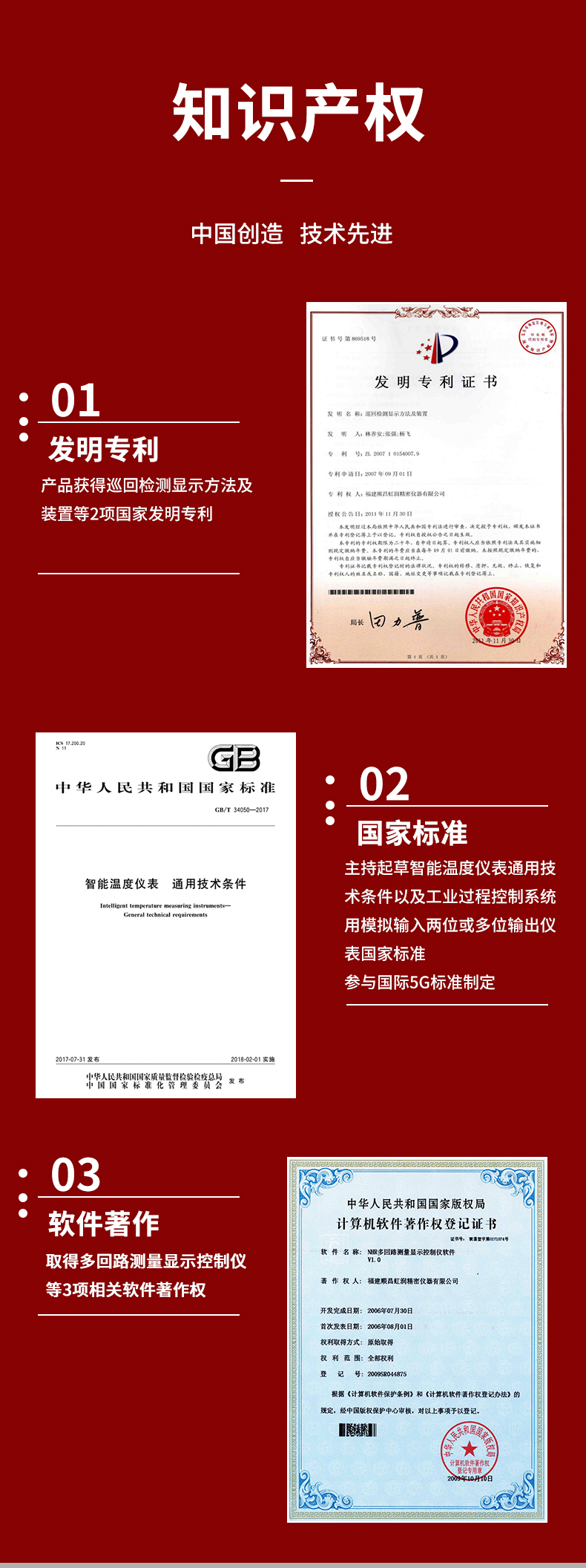 虹潤(rùn)公司是專業(yè)生產(chǎn)多路溫度巡檢儀的國(guó)家專精特新“小巨人”企業(yè)。生產(chǎn)的多路溫度巡檢儀,具有八回路巡檢采集,全切換信號(hào)輸入,高抗電磁干擾,全隔離設(shè)計(jì),分別報(bào)警/分別變送輸出等特點(diǎn)。產(chǎn)品獲得巡回檢測(cè)顯示方法及裝置以及工業(yè)模塊的導(dǎo)軌式安裝結(jié)構(gòu)等2項(xiàng)國(guó)家發(fā)明專利,主持起草智能溫度儀表通用技術(shù)條件以及工業(yè)過程控制系統(tǒng)用模擬輸入兩位或多位輸出儀表等2項(xiàng)國(guó)家標(biāo)準(zhǔn),參與國(guó)際5G標(biāo)準(zhǔn)制定,取得巡回檢測(cè)控制儀等3項(xiàng)相關(guān)軟件著作權(quán)。產(chǎn)品廣泛應(yīng)用于石化、冶金、電力、食品、制藥、水處理、實(shí)驗(yàn)室等諸多領(lǐng)域。