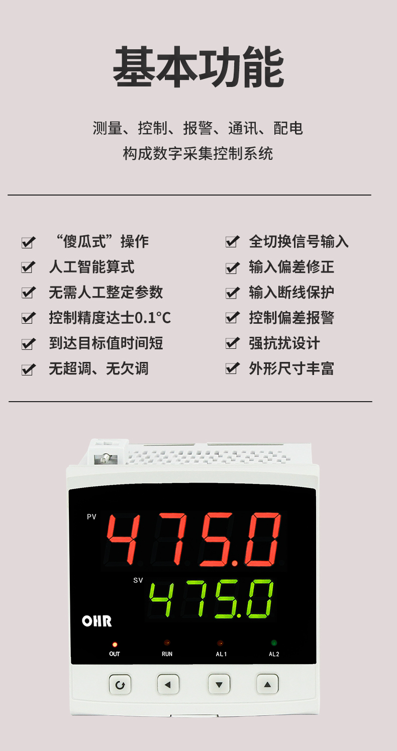 虹潤公司是專業(yè)生產(chǎn)溫控器的國家專精特新“小巨人”企業(yè)。生產(chǎn)的傻瓜式智能溫控器,具有傻瓜式操作,真正人工智能算式,無需人工整定參數(shù),控制精度可達(dá)±0.1°C,高抗干擾等特點。產(chǎn)品獲得模糊PID控制儀及控制方法、人工智能調(diào)節(jié)器、智能化控制器、移相觸發(fā)控制器、閥門自動手動無擾動操作控制方法及裝置等5項國家發(fā)明專利,主持起草智能溫度儀表通用技術(shù)條件、工業(yè)過程控制系統(tǒng)用模擬輸入兩位或多位輸出儀表、工業(yè)過程測量和控制系統(tǒng)用智能調(diào)節(jié)器等3項國家標(biāo)準(zhǔn),參與國際5G標(biāo)準(zhǔn)制定,取得傻瓜式模糊PID調(diào)節(jié)儀等3項相關(guān)軟件著作權(quán)。產(chǎn)品廣泛應(yīng)用于電力、石化,冶金、制藥、食品等幾乎所有工業(yè)現(xiàn)場,實現(xiàn)精準(zhǔn)控溫,保障生產(chǎn)安全與質(zhì)量。