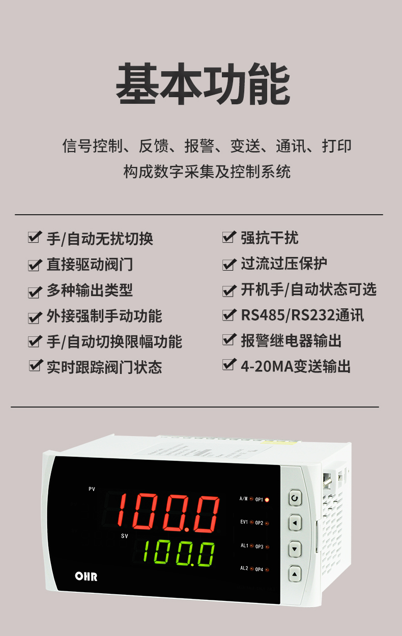 OHR-E500系列手動操作器適合作為DCS系統(tǒng)回路調(diào)節(jié)控制輸出和智能調(diào)節(jié)器控制輸出的備用操作器使用,可同時輸入和顯示給定信號和反饋信號,可與各類傳感器、變送器配合使用。