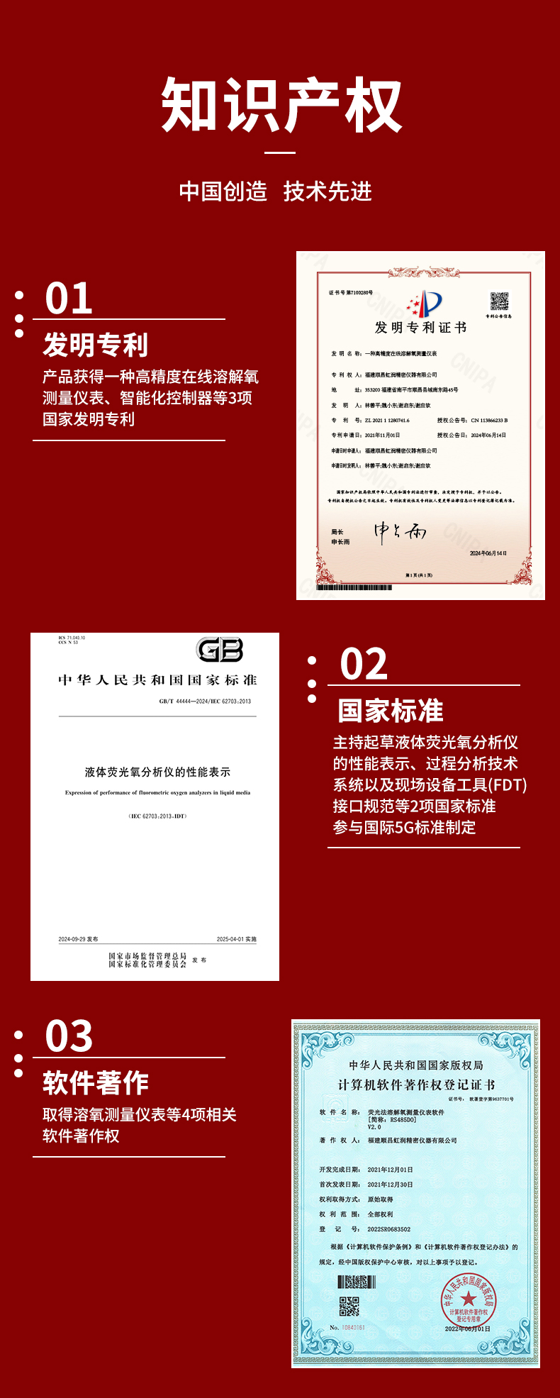 虹潤公司是專業(yè)生產(chǎn)水質(zhì)分析儀的國家專精特新“小巨人”企業(yè)。生產(chǎn)的熒光法溶解氧控制器,具有采用熒光法測量,中英文菜單切換 ,溫度、壓力、鹽度三重補(bǔ)償,標(biāo)配報(bào)警、變送、RS485通訊等特點(diǎn)。產(chǎn)品獲得產(chǎn)品獲得一種高精度在線溶解氧測量儀表、智能化控制器等2項(xiàng)國家發(fā)明專利;主持起草液體熒光氧分析儀的性能表示、現(xiàn)場設(shè)備工具(FDT)接口規(guī)范、工業(yè)過程控制系統(tǒng)用模擬輸入兩位或多位輸出儀表以及過程分析技術(shù)系統(tǒng)等4項(xiàng)國家標(biāo)準(zhǔn);參與國際5G標(biāo)準(zhǔn)制定,取得溶解氧測量儀表等2項(xiàng)相關(guān)軟件著作權(quán)。產(chǎn)品廣泛應(yīng)用于實(shí)驗(yàn)室、水處理、環(huán)境監(jiān)測、食品、制藥、農(nóng)業(yè)等諸多領(lǐng)域。