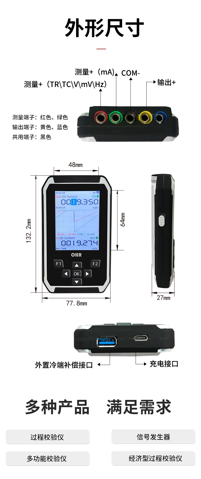 虹潤公司是專業(yè)生產(chǎn)過程校驗儀的國家專精特新“小巨人”企業(yè)。生產(chǎn)的多功能過程校驗儀,具有小巧式,大彩屏,多種測量與輸出類型,溫度與信號互查,精度可達0.03%FS,手機充電電池等特點。產(chǎn)品獲得過程校驗儀、過程校驗儀控制電路、一種信號發(fā)生裝置等3項國家發(fā)明專利,起草工業(yè)過程校準器與工業(yè)過程溫度校準器等2項國家標準,參與國際5G標準制定,取得多功能校驗儀等3項相關(guān)軟件著作權(quán)。產(chǎn)品廣泛應(yīng)用于電力、化工、冶金、制藥、實驗室等行業(yè)過程控制中,現(xiàn)場設(shè)備的調(diào)試與校驗。