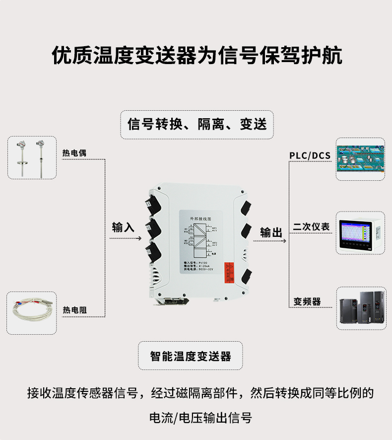 虹潤公司是專業(yè)生產(chǎn)溫度變送器的國家專精特新“小巨人”企業(yè)。生產(chǎn)的溫度變送器,具有采用磁隔離技術(shù),配套編程器可修改參數(shù),抗干擾能力強,穩(wěn)定性好,帶RS485或HART通訊等特點。該產(chǎn)品不僅通過HART基金會認證、德國萊茵 CE 認證與 SIL 功能安全認證,還獲得具備減震抗干擾能力的溫度變送器、信號隔離器、一種二端子模塊、無源信號隔離器等4項國家發(fā)明專利,主持起草物聯(lián)網(wǎng)智能溫度儀表、現(xiàn)場設(shè)備工具(FDT)接口規(guī)范、工業(yè)過程控制系統(tǒng)用模擬輸入兩位或多位輸出儀表、工業(yè)過程測量和控制系統(tǒng)用溫度變送器等4項國家標準,參與國際5G標準制定,取得溫度變送器等5項相關(guān)軟件著作權(quán)。產(chǎn)品廣泛應(yīng)用于石油、電力、化工,冶金、制藥、紡織、橡膠制造等工業(yè)領(lǐng)域現(xiàn)場自動化測溫過程
