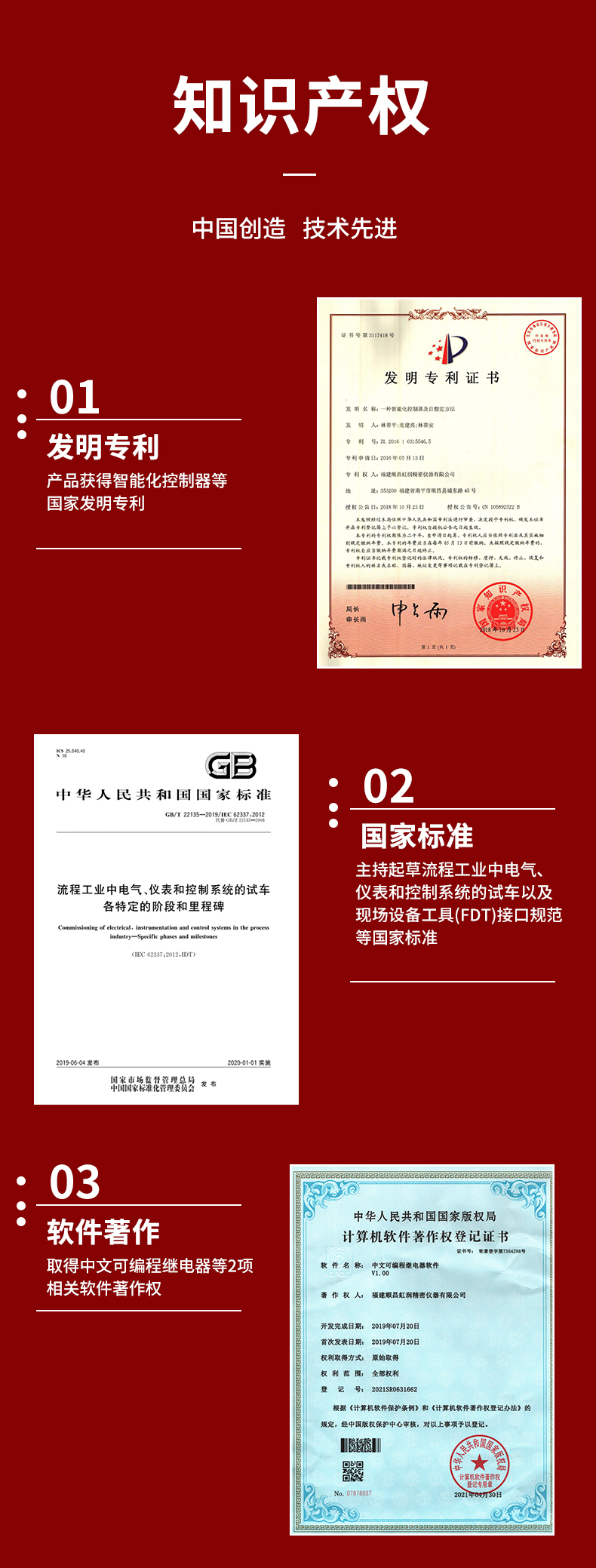 虹潤(rùn)公司是專業(yè)生產(chǎn)PLC控制器的國(guó)家專精特新“小巨人”企業(yè)。生產(chǎn)的PLC中文一體機(jī),具有全中文編程,專業(yè)邏輯控制與時(shí)間控制,梯形圖編程方式,全隔離設(shè)計(jì),遠(yuǎn)程RS485通訊監(jiān)測(cè)等特點(diǎn)。產(chǎn)品獲得智能化控制器、多通道可編程繼電器等2項(xiàng)國(guó)家發(fā)明專利;主持起草流程工業(yè)中電氣、儀表和控制系統(tǒng)的試車以及現(xiàn)場(chǎng)設(shè)備工具(FDT)接口規(guī)范等2項(xiàng)國(guó)家標(biāo)準(zhǔn),參與國(guó)際5G標(biāo)準(zhǔn)制定,取得中文可編程繼電器等2項(xiàng)相關(guān)軟件著作權(quán)。產(chǎn)品廣泛應(yīng)用于實(shí)驗(yàn)室、市政工程、農(nóng)業(yè)養(yǎng)殖、包裝機(jī)械、食品行業(yè)、樓宇自控等諸多領(lǐng)域。