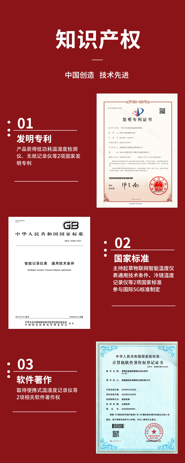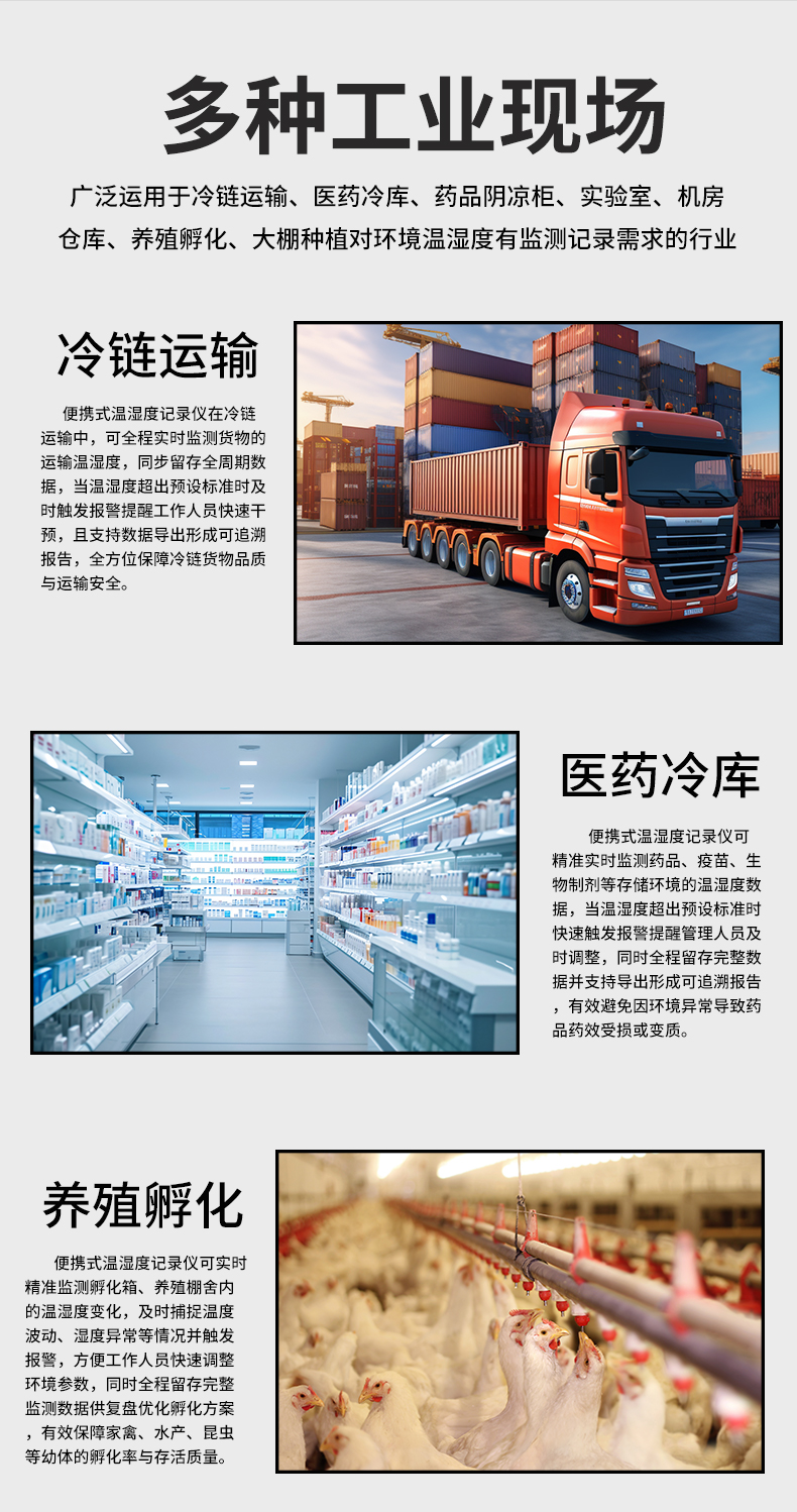 虹潤公司是專業(yè)生產(chǎn)環(huán)境監(jiān)測儀表的國家專精特新“小巨人”企業(yè)。生產(chǎn)的便攜式溫濕度記錄儀,具有溫濕度記錄與轉(zhuǎn)存,手機(jī)充電電池,磁吸或壁掛安裝,故障報警提示,配上位機(jī)軟件等特點(diǎn)。產(chǎn)品獲得一種手持式低功耗溫濕度檢測儀、無紙記錄儀等2項(xiàng)國家發(fā)明專利,主持起草物聯(lián)網(wǎng)智能溫度儀表通用技術(shù)條件、冷鏈溫度記錄儀等2項(xiàng)國家標(biāo)準(zhǔn),參與國際5G標(biāo)準(zhǔn)制定,取得便攜式溫濕度記錄儀等3項(xiàng)相關(guān)軟件著作權(quán)。產(chǎn)品廣泛應(yīng)用于冷鏈運(yùn)輸、醫(yī)藥冷庫、藥品陰涼柜、實(shí)驗(yàn)室、機(jī)房倉庫、養(yǎng)殖孵化、大棚種植等諸多領(lǐng)域。