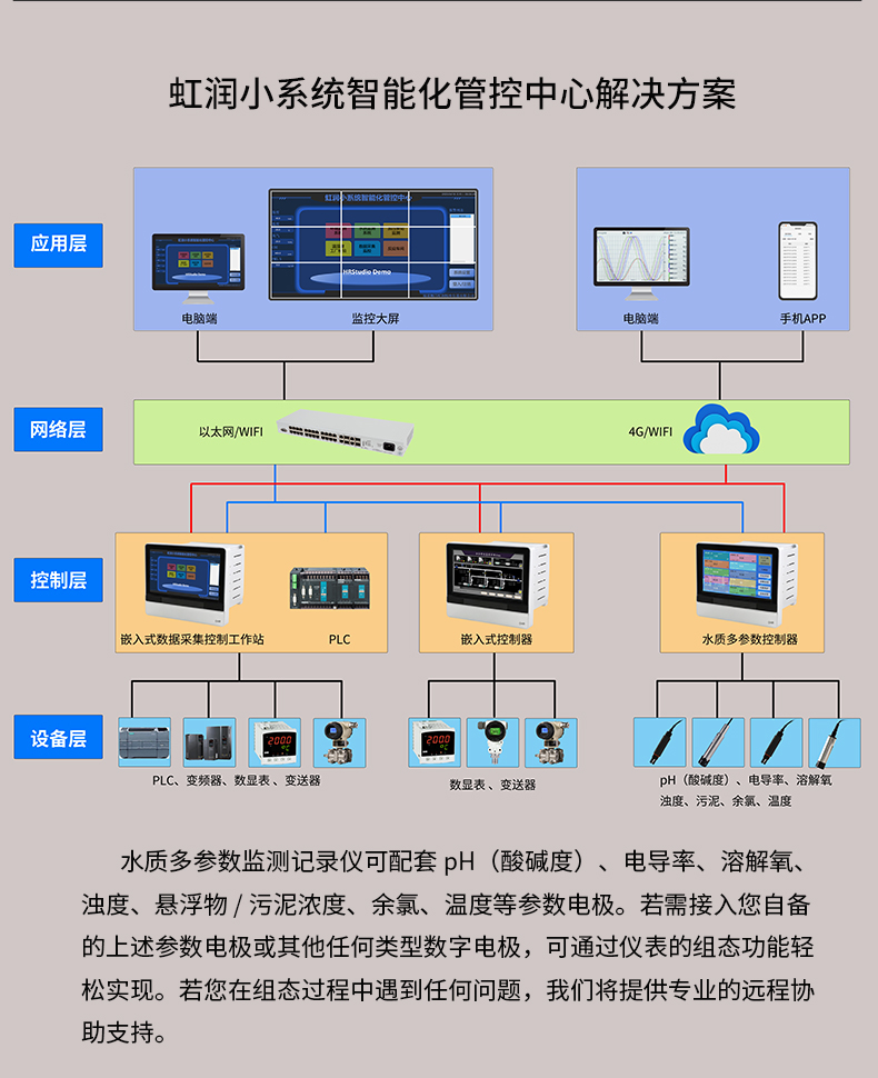虹潤公司是專業(yè)生產(chǎn)水質(zhì)分析儀的國家專精特新“小巨人”企業(yè)。生產(chǎn)的水質(zhì)多參數(shù)監(jiān)測記錄儀,具有多參數(shù)采集同屏顯示,數(shù)據(jù)記錄與轉(zhuǎn)存,支持WiFi或4G實現(xiàn)數(shù)據(jù)云方案,內(nèi)置與外配組態(tài)軟件等特點。產(chǎn)品獲得一種適應(yīng)性強PH控制儀、嵌入式數(shù)據(jù)采集工作站、數(shù)據(jù)采集控制工作站、無紙記錄儀、智能化控制器等5項國家發(fā)明專利;主持起草通信系統(tǒng)多通道數(shù)據(jù)采集控制終端規(guī)范軍用標(biāo)準(zhǔn)與物聯(lián)網(wǎng)智能記錄儀表通用技術(shù)條件國家標(biāo)準(zhǔn),參與國際5G標(biāo)準(zhǔn)制定;取得PH無紙記錄儀等7項相關(guān)軟件著作權(quán)。產(chǎn)品廣泛應(yīng)用于實驗室、水處理、環(huán)境監(jiān)測、食品、制藥、農(nóng)業(yè)、工業(yè)流程控制等諸多領(lǐng)域。